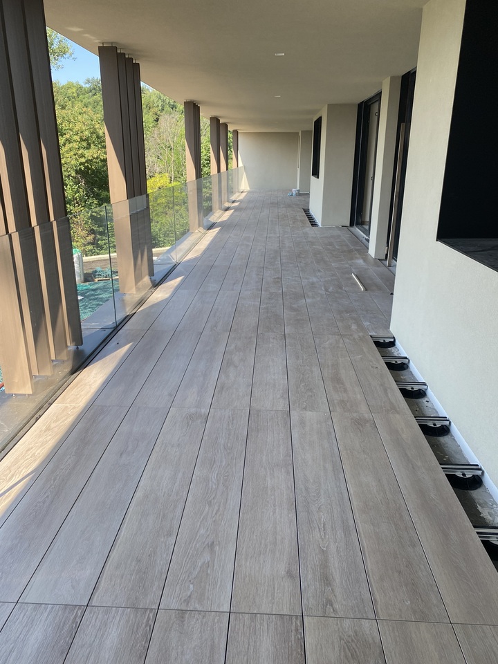 Per i pavimenti sopraelevati da esterno sono stati utilizzati Supporti New Maxi. La qualità, la semplicità nel posizionamento ma, soprattutto, la facilità di posa dei listoni in gres effetto legno: queste sono le principali caratteristiche che rendono i supporti Pedestal leader del mercato e i più apprezzati dai posatori.