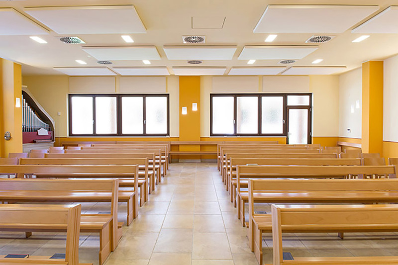 The Saint Anthony of Padua church of the new Arcella parish is a soundproofing project that required the supply of 24 PHONOLOOK panels with a 5 cm thickness and a light beige color: 12 panels sized 120 x 180 cm and 12 panels sized 100 x 120 cm.